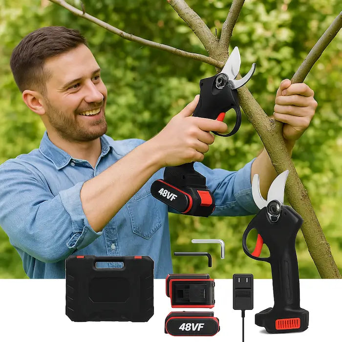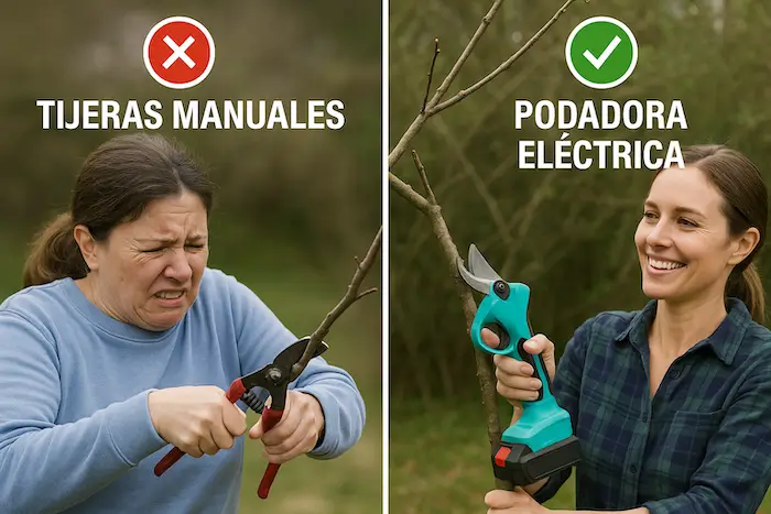 ¿Cansado de pasar horas podando manualmente? Con esta podadora eléctrica, cortar ramas es rápido, fácil y sin esfuerzo físico.
